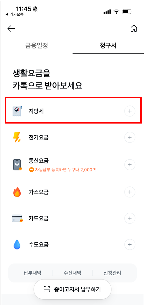 📌 카카오페이로 지방세 고지서 받는 방법