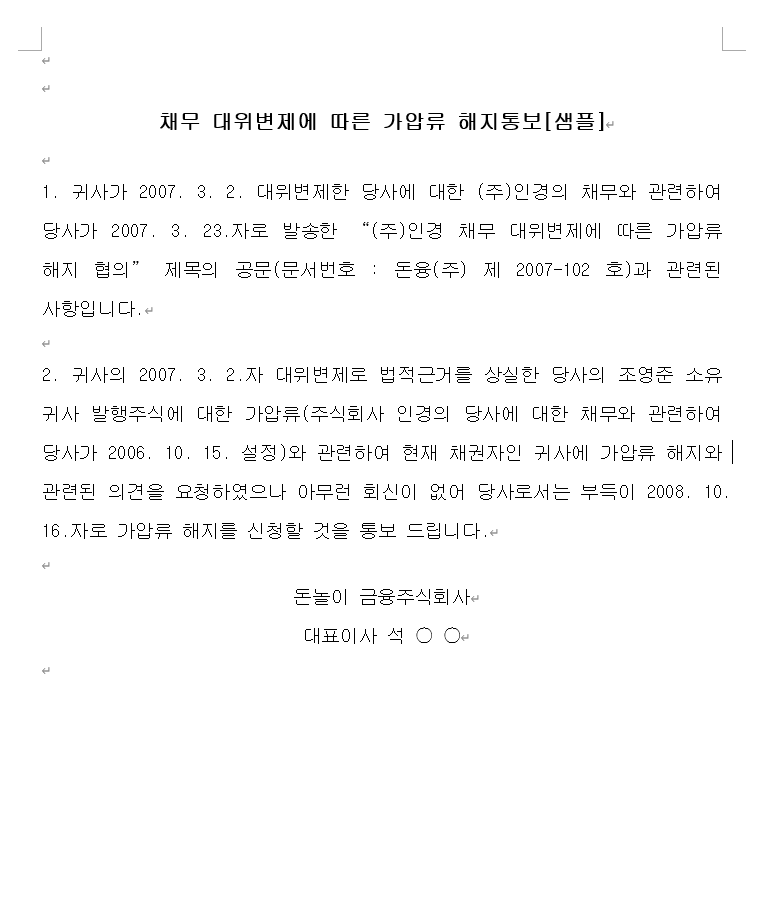 - 후속 조치: 이행하지 않을 경우, 법적 절차에 착수하겠다는 의사 표현