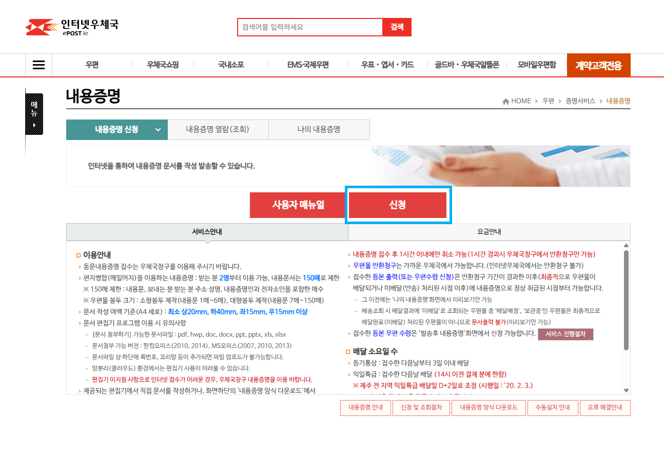 | 보관 기간 | 우체국에서 3년간 보관, 발송 후 3년 이내 증명 청구 가능 |