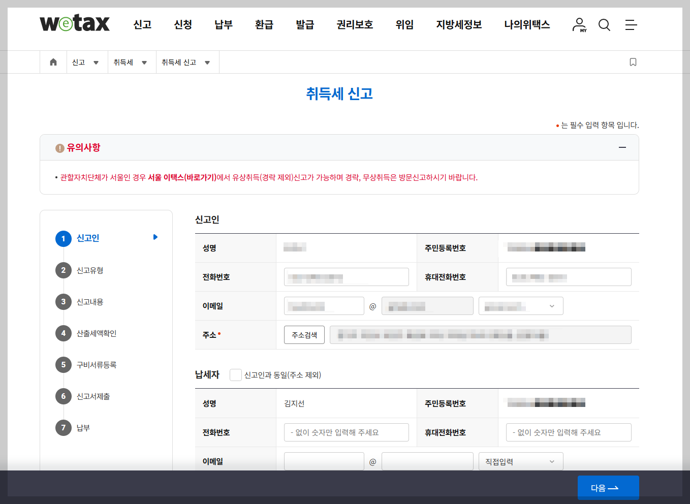 오프라인 신청 방법 : 취득세는 지방세이므로 지자체(구청 등)에서 접수 가능합니다.