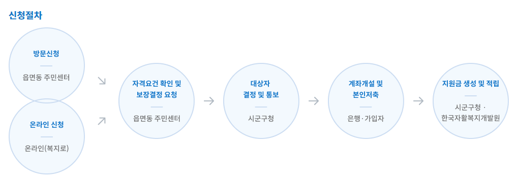 | 신청 경로 | 거주지 읍·면·동 주민센터, 복지로(온라인) 보건복지상담센터 129(전화 접수) |