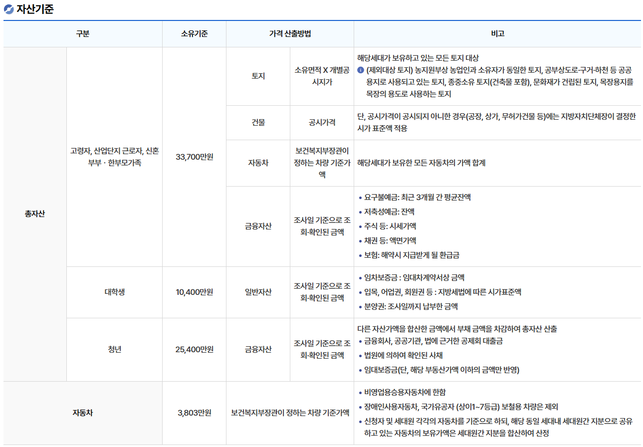 - 고령자·산단근로자·신혼부부·한부모가족: 총자산 33,700만 원 이하
