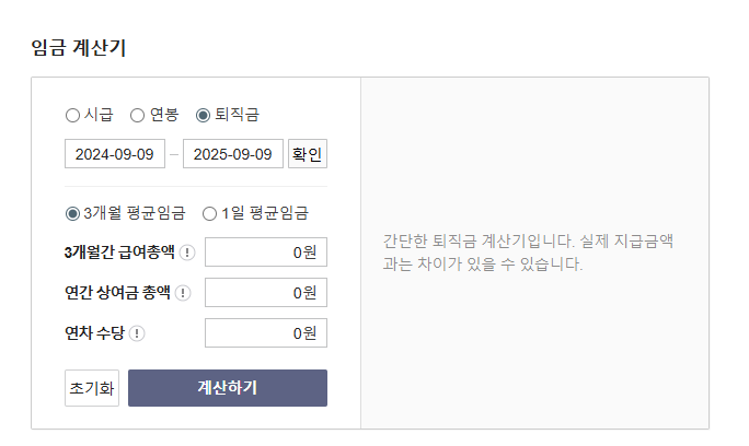참고로, 고용노동부 퇴직금 계산기는 정부 서버실 화재로 복구가 다 되지 않아 접속이 어려울 수 있습니다.