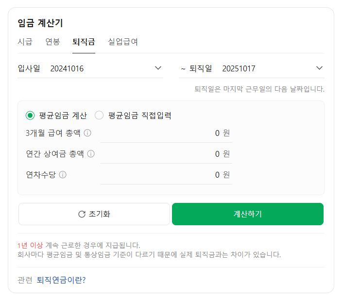 네이버 퇴직금 계산기