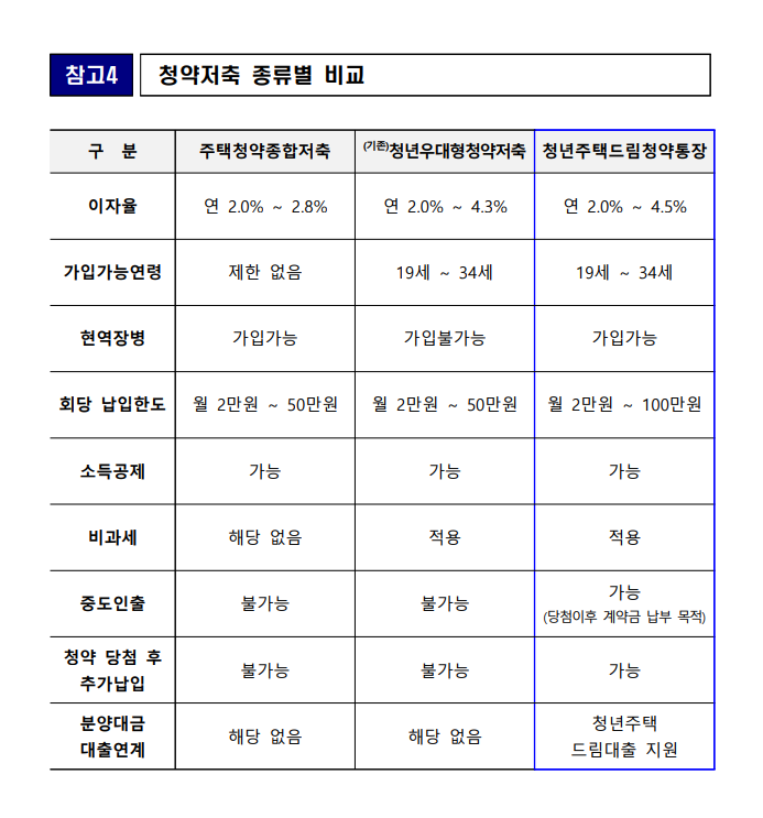 | 항목일반 | 주택청약종합저축 | 청년주택드림청약통장 |