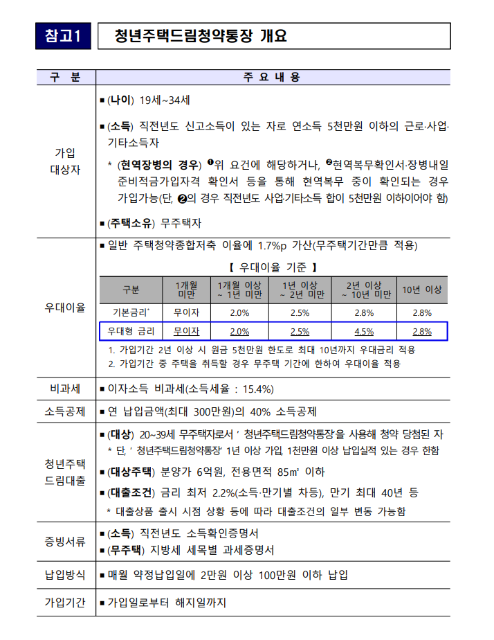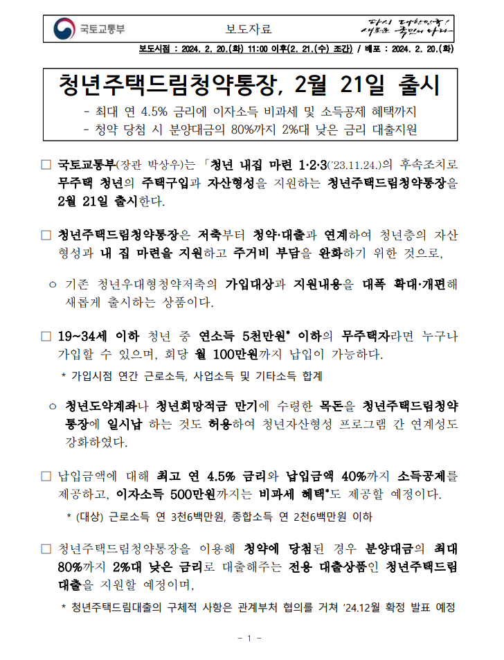 청년주택드림청약통장 국토교통부 보도자료