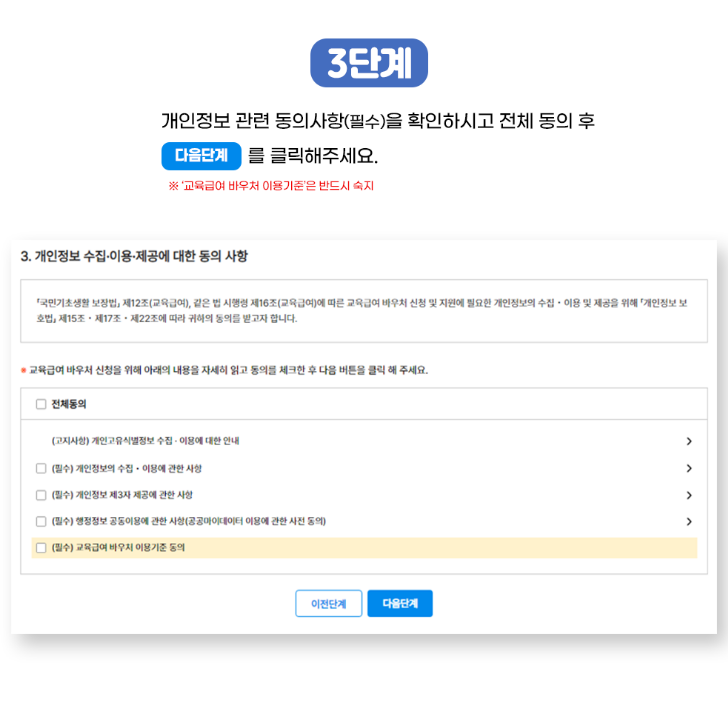 Step 3 교육급여 바우처 신청 (교육급여 바우처 사이트에서 신청)