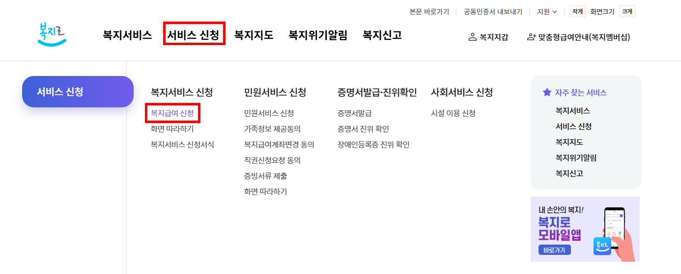 경로 | 🔗 복지로 | 주민센터(행정복지센터) 방문 |