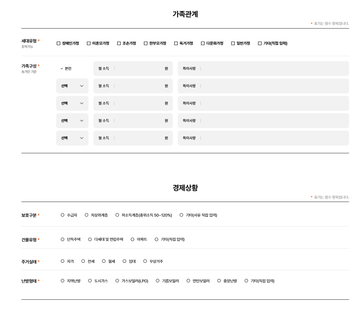 | 에너지바우처 | 생계·의료급여 수급자 등 에너지 취약계층 | 전기·도시가스·지역난방·등유·연탄 등 구매 바우처 지급 | ✔ 개인·가구 신청 가능 | 매년 5~12월 접수 |