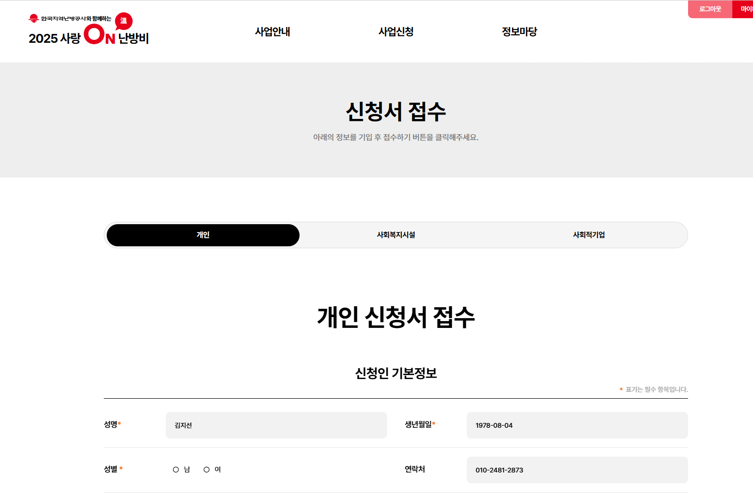 | 신청방법 | 개인 명의로 사랑ON(溫) 난방비 홈페이지 회원가입 후 신청서 및 필수 서류 제출 ※ 신청 내용에 허위사실 기재 시 선정이 취소될 수 있음 |