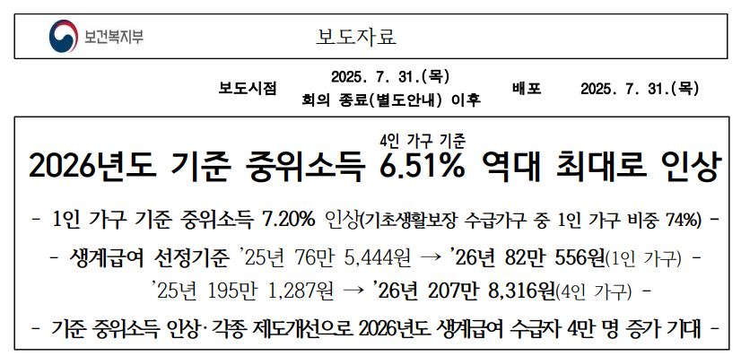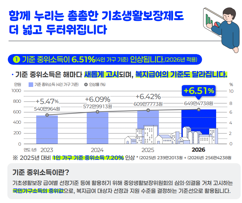 🔗2026년도 기준 중위소득 6.51% 역대 최대로 인상 보도자료