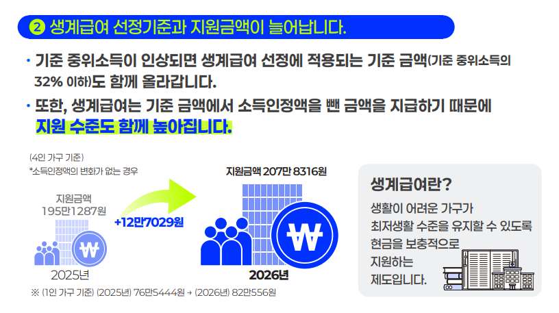 2026년 기초생활보장 급여별 선정 기준