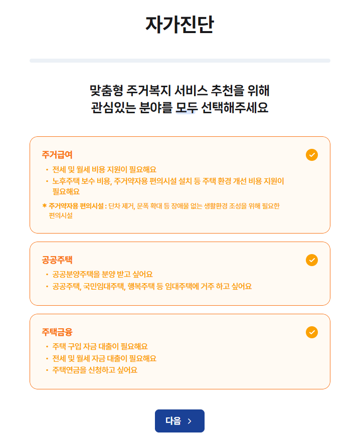 자가진단으로 나에게 맞는 임대주택 찾기