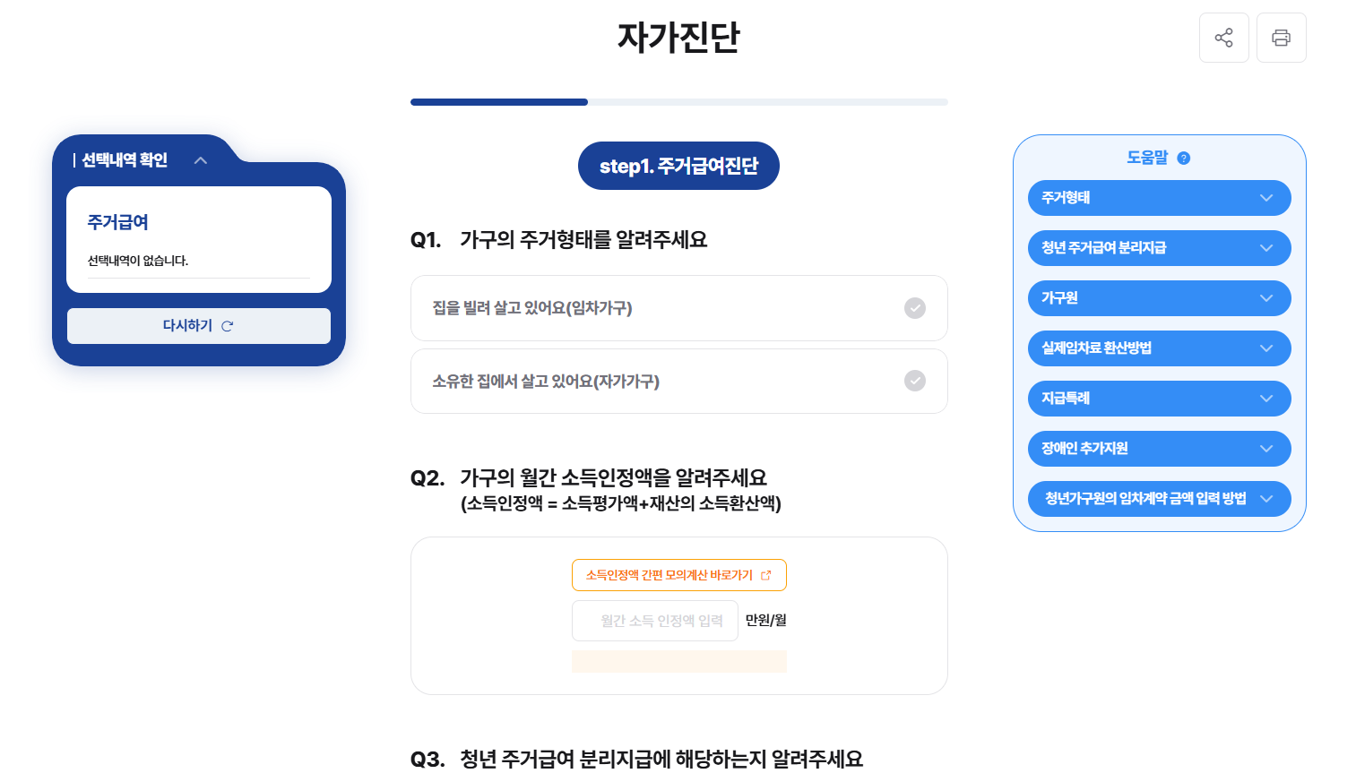 - 기본 정보(연령, 소득, 주거형태 등)를 입력하면